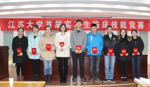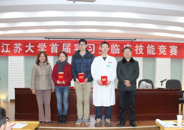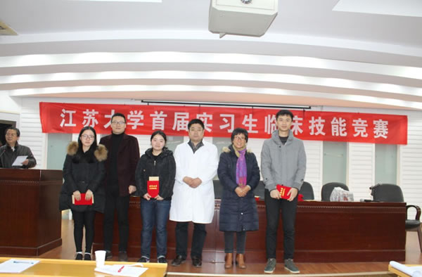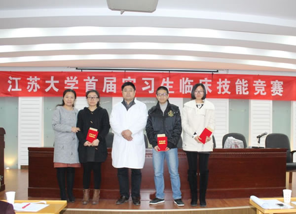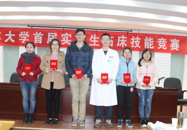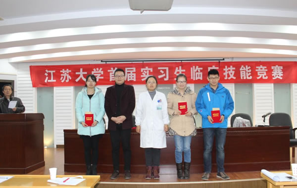 为了进一步推动临床实践教学改革,加强医学生临床“三基”培养,提高医学生综合能力与临床实践教学质量,医学部举办了 “伟德victor1946第一届实习生临床技能竞赛”活动,竞赛分初赛和复赛。初赛与本学年第一次临床实习教学检查同步进行,在各附属医院、教学医院及实习医院中,经专家考核选定27家医院的60名实习同学参加复赛,复赛于11月28日在北固校区隆重举行。经过理论考试、临床技能操作三站循环测试和专家面试三个赛程。采用随机抽签、现场亮分与逐步淘汰方式,经过激烈角逐,最终产生一等奖3名,二等奖6名,三等奖9名。七位评委为三等奖得主分别颁奖,医学部领导和第一临床医学院领导为二等奖得主颁奖,施卫东副校长亲临活动现场为一等奖得主颁奖后,发表热情洋溢的讲话,对这一活动给予充分肯定。