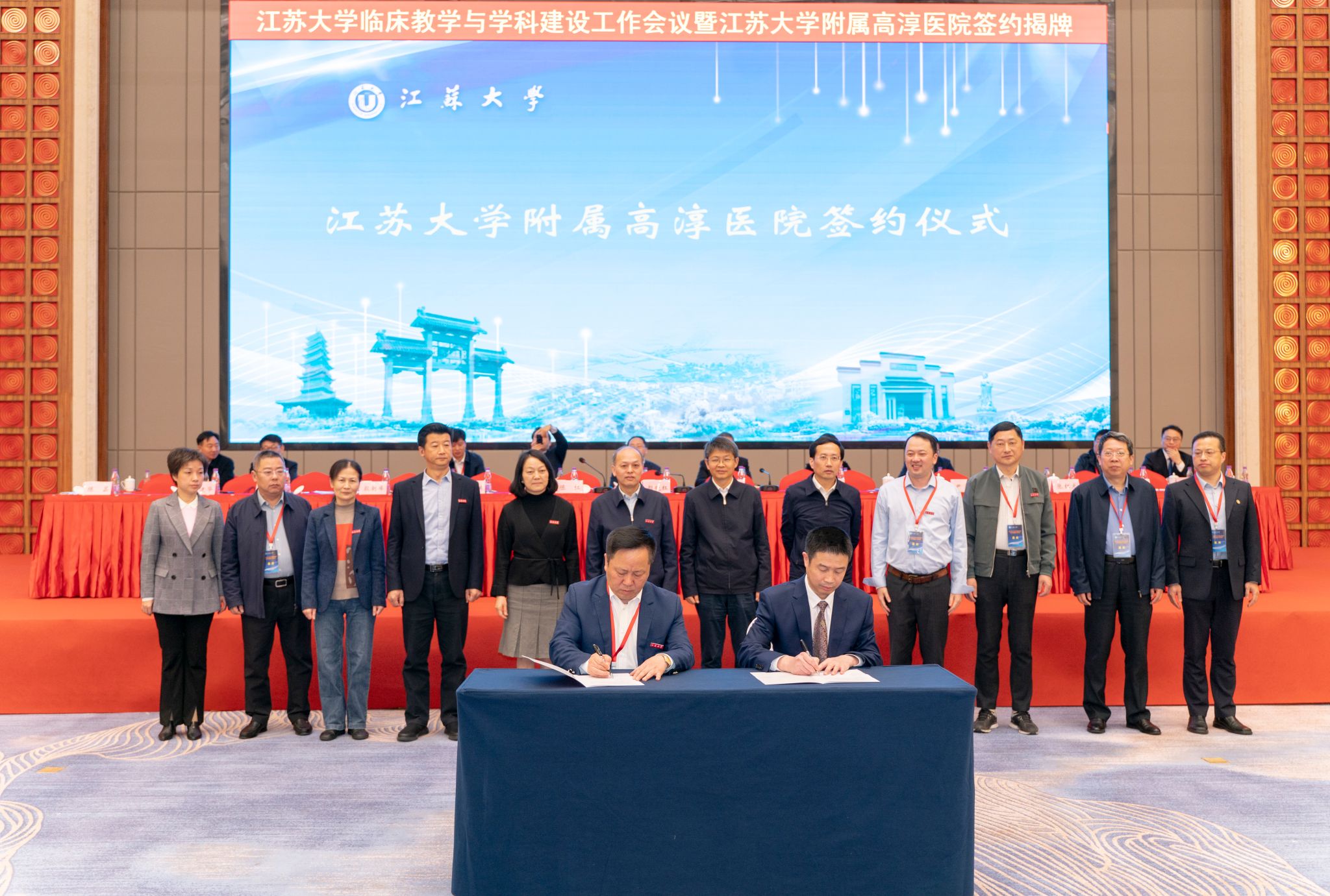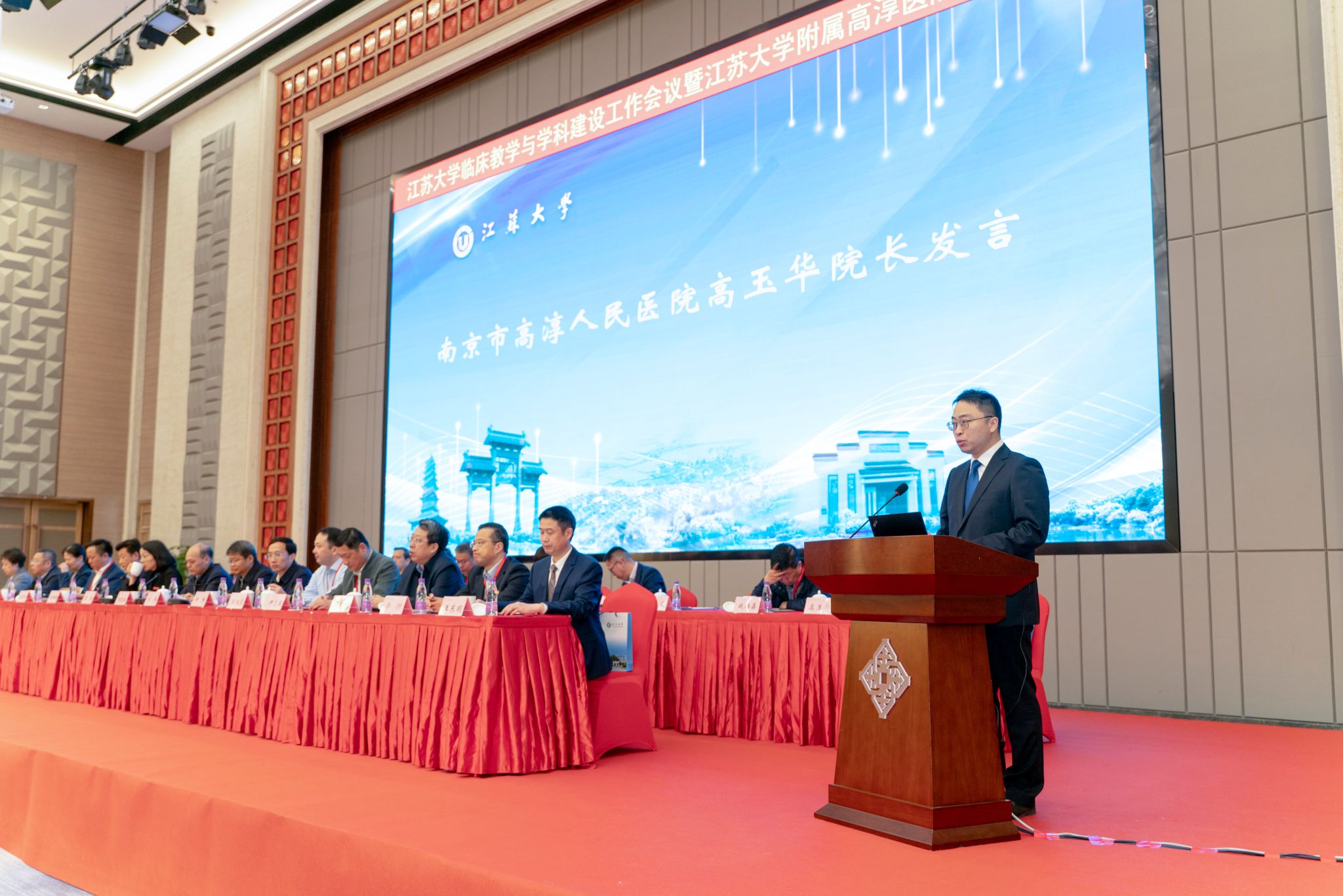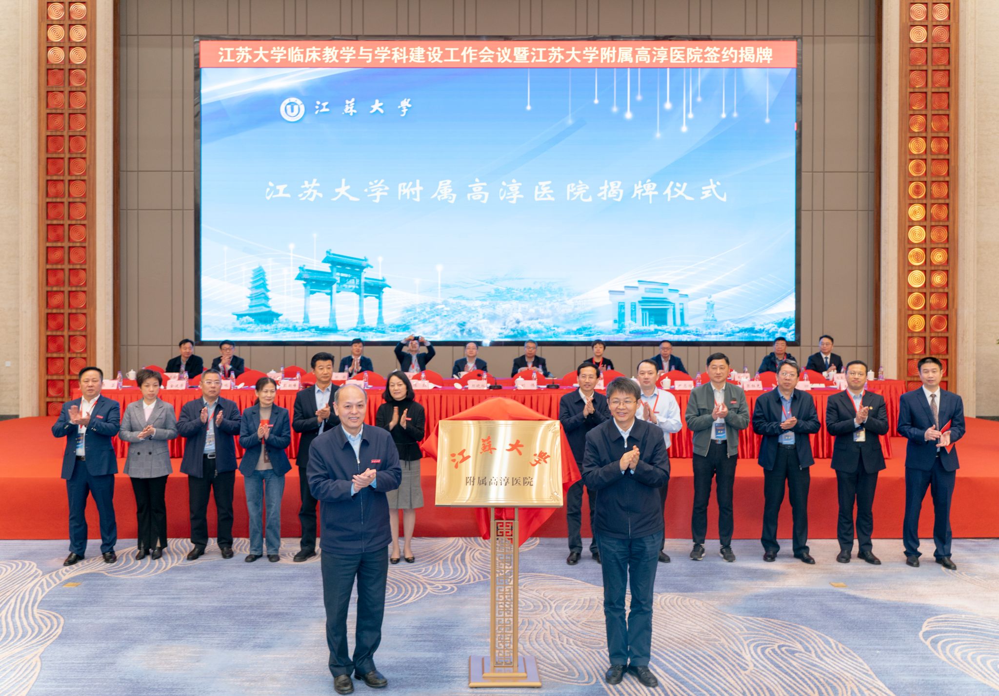 3月11日,我校在南京市高淳人民医院召开临床教学与学科建设工作会议暨伟德victor1946附属高淳医院签约揭牌仪式。校长颜晓红,南京市人大常委会副主任、高淳区委书记刘伟,副校长陈红,高淳区副区长邱峰,校办主任吴麟麟,科技处处长任旭东,医学部常务副主任殷朝峰,京江学院党委书记尹志国,医学院党委书记沈雪妹,高淳区卫健委党委书记陈芸,南京市高淳人民医院党委书记王东明、院长高玉华,各附属医院、教学医院等临床教学基地单位的领导、部门负责人及骨干教师约200余人出席了会议。会议上午的议程由伟德victor1946副校长陈红、医学院党委书记沈雪妹主持。