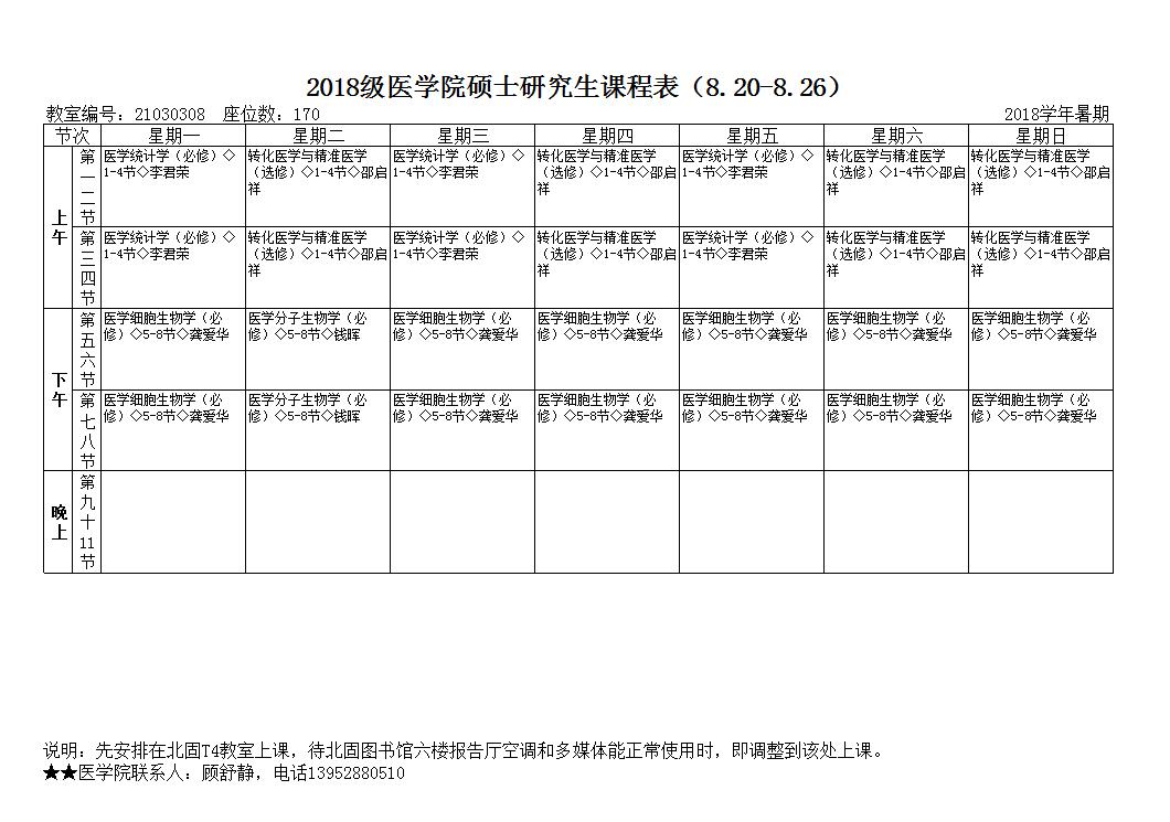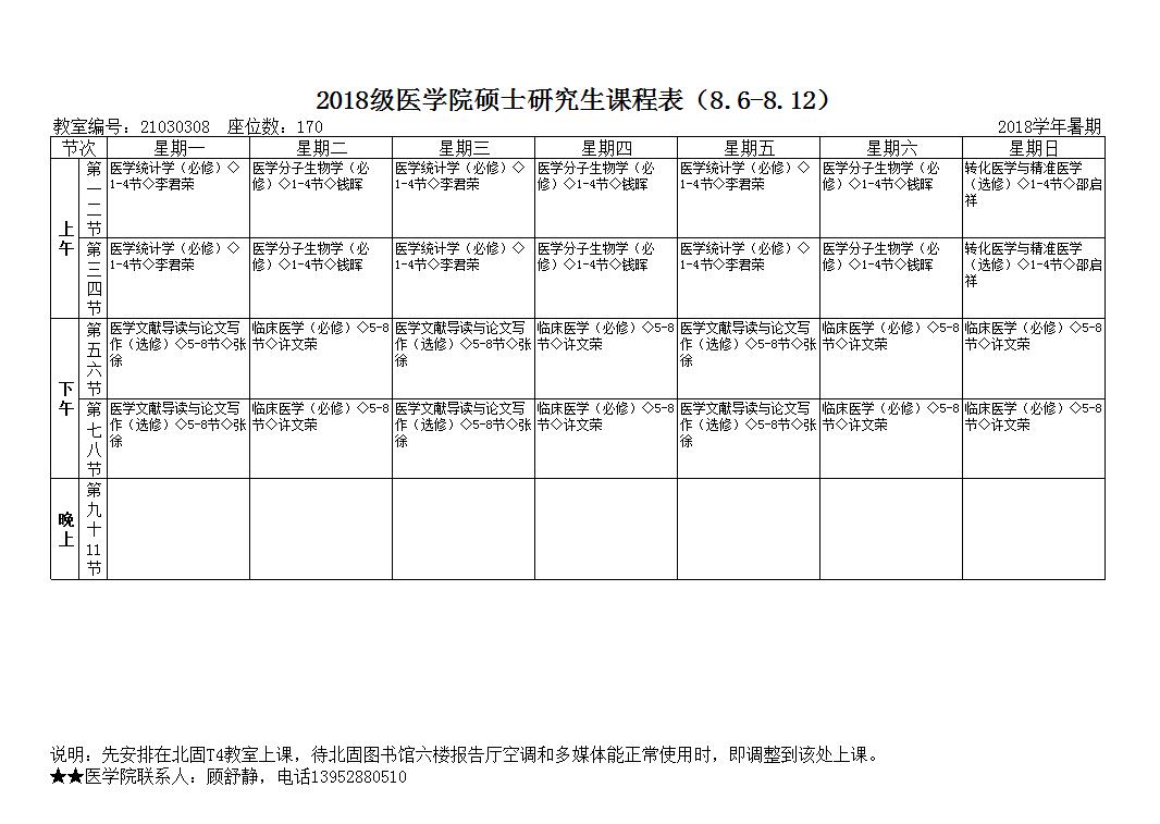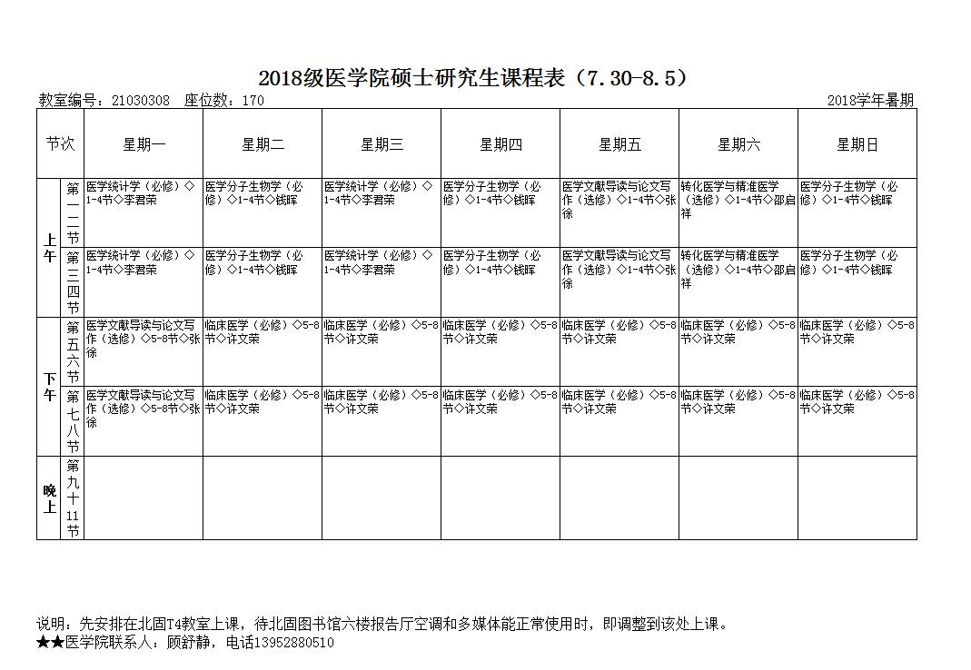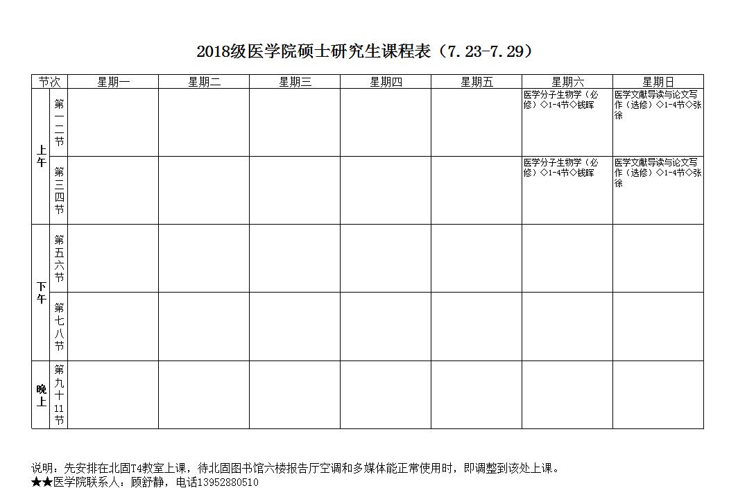 伟德victor19462018级医学院硕士生2018年7月23日至9月2日课程表