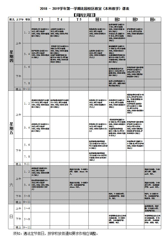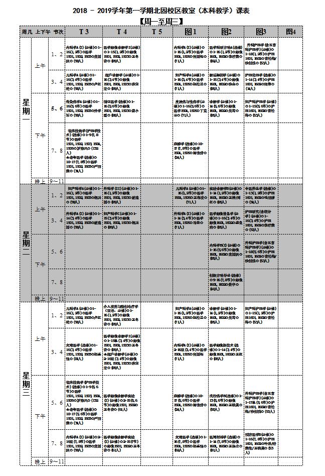 伟德victor1946北固校区2018 - 2019学年第一学期本科教学课表