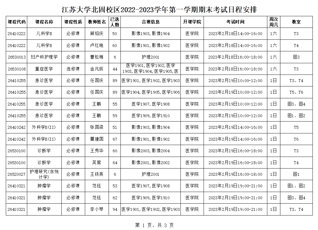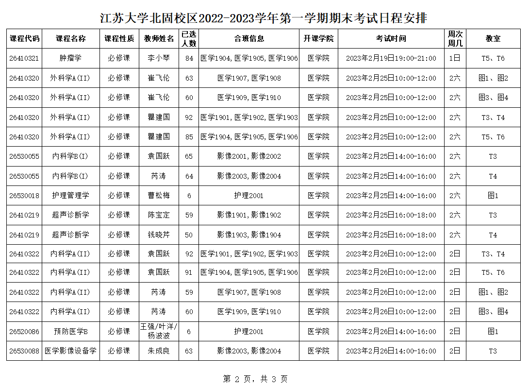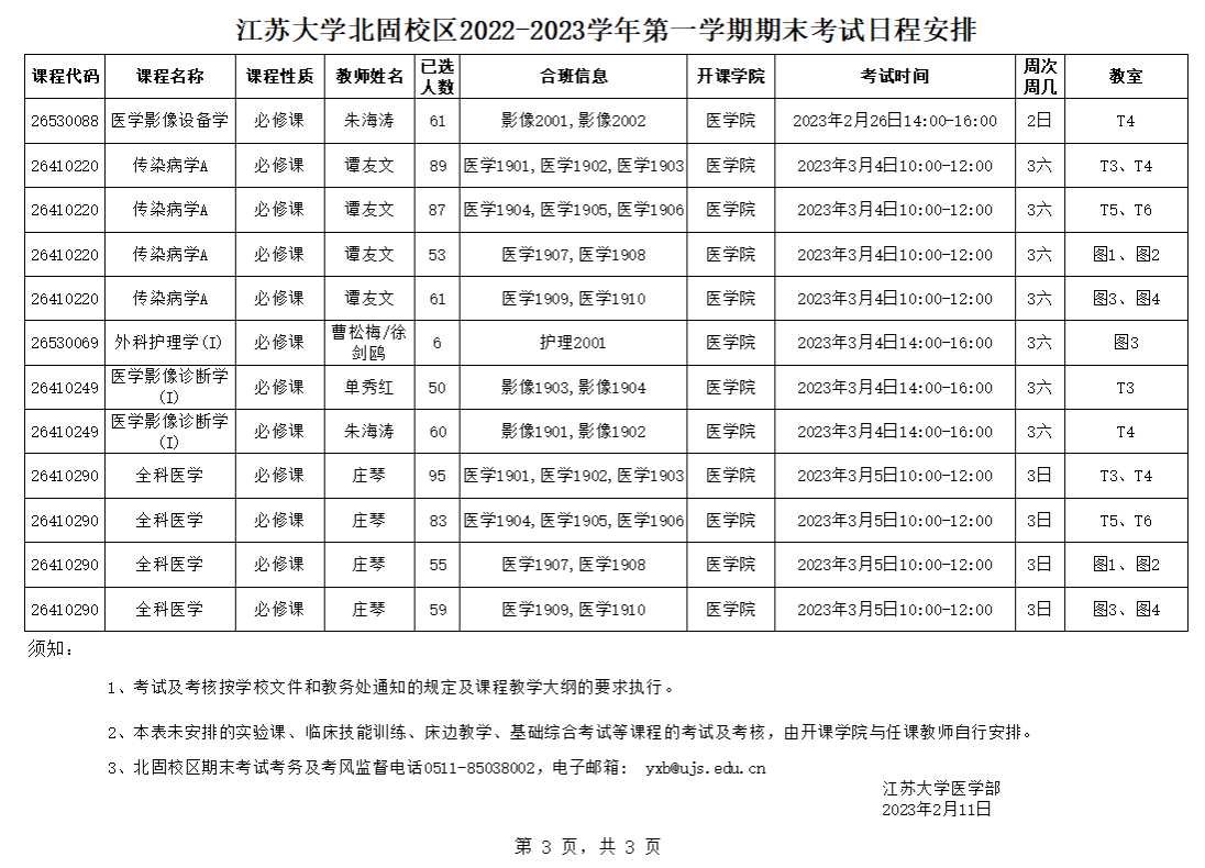 伟德victor1946北固校区2022-2023学年第一学期期末考试日程安排(2.11)