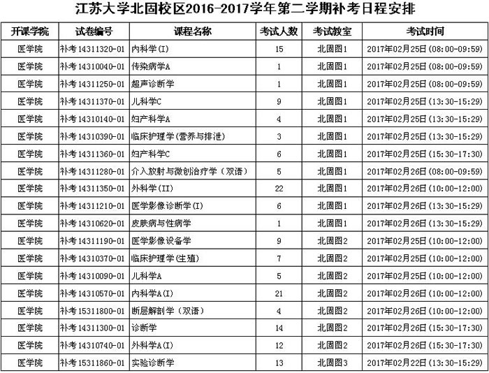 伟德victor1946北固校区2016-2017-2学期补考日程安排及试卷付印单