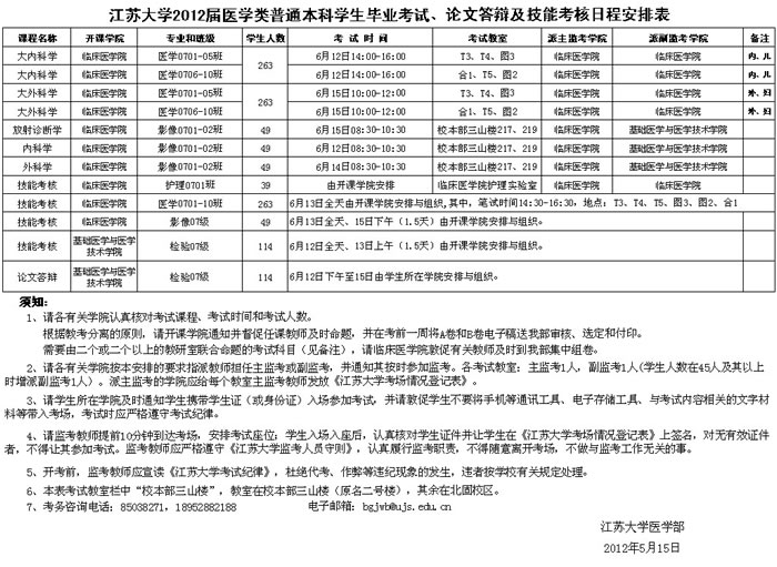 伟德victor19462012届医学类普通本科学生毕业考试、论文答辩、技能考核日程安排表
