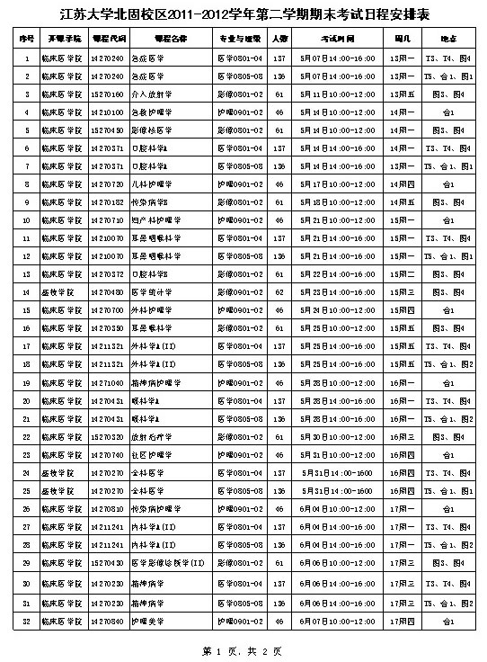 附: 北固校区2011-2012-2期末考试安排表20120426.xls