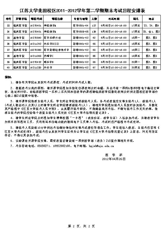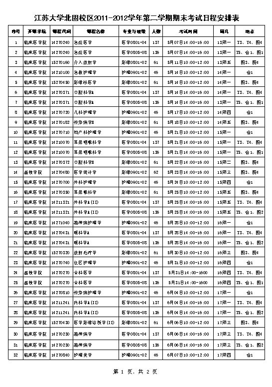 附: 北固校区2011-2012-2期末考试安排表20120426.xls