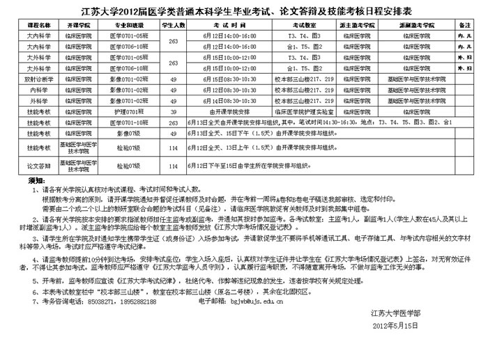 2012届医学类毕业考试、论文答辩、技能考核日程安排表