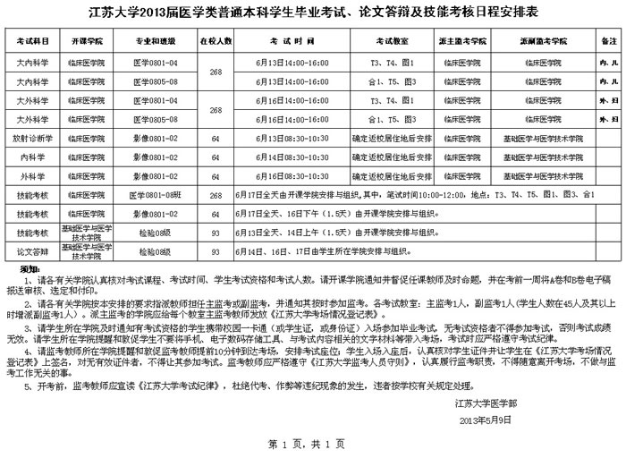 伟德victor19462013届医学类普通本科学生毕业考试、论文答辩及技能考核日程安排表