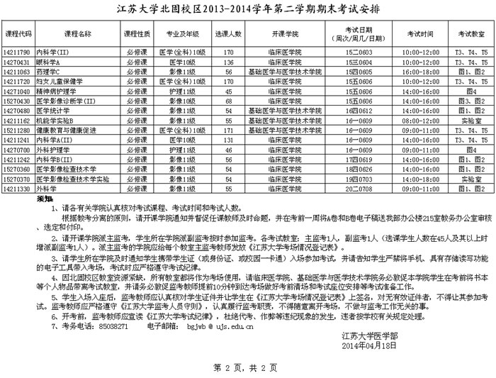 伟德victor1946北固校区2013-2014-2期末考试安排