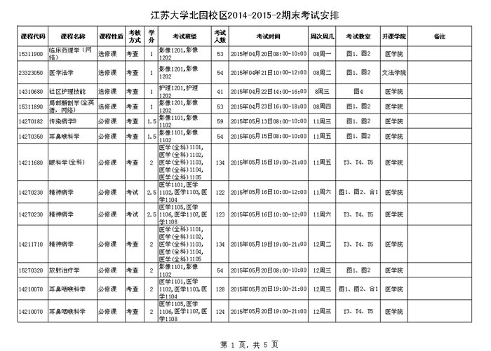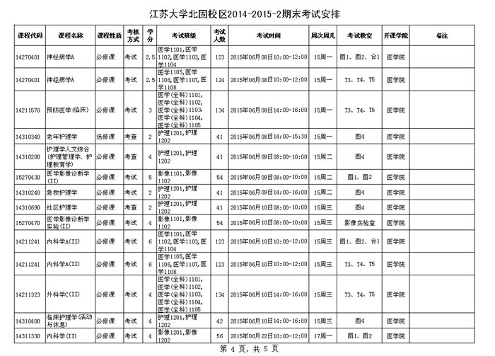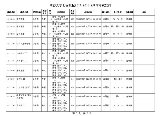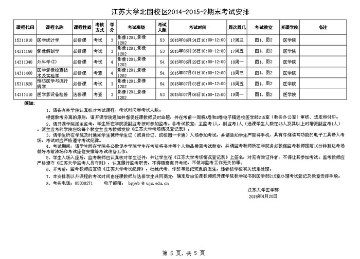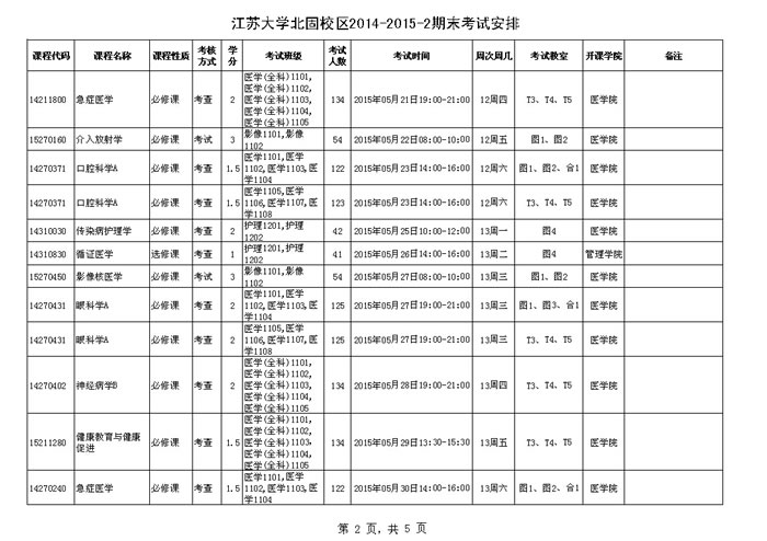 伟德victor1946北固校区2014-2015学年第二学期期末考试安排