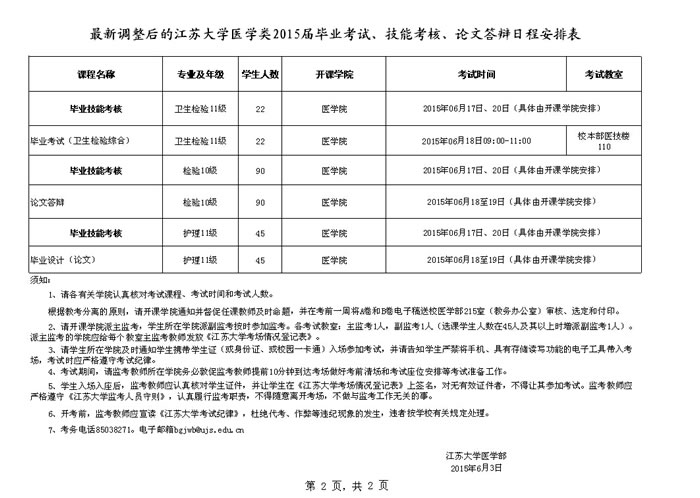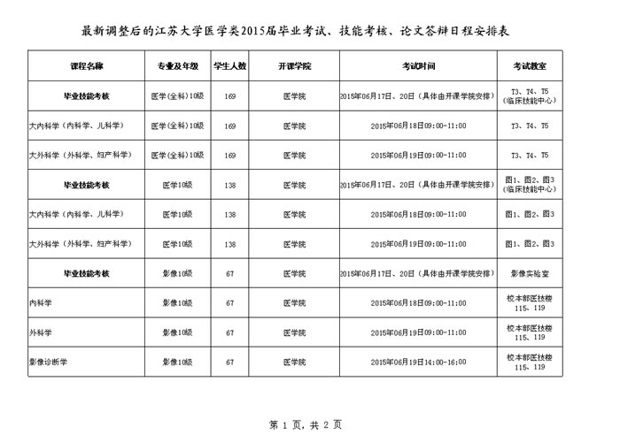 最新调整后的伟德victor1946医学类2015届毕业考试、技能考核、论文答辩日程安排表