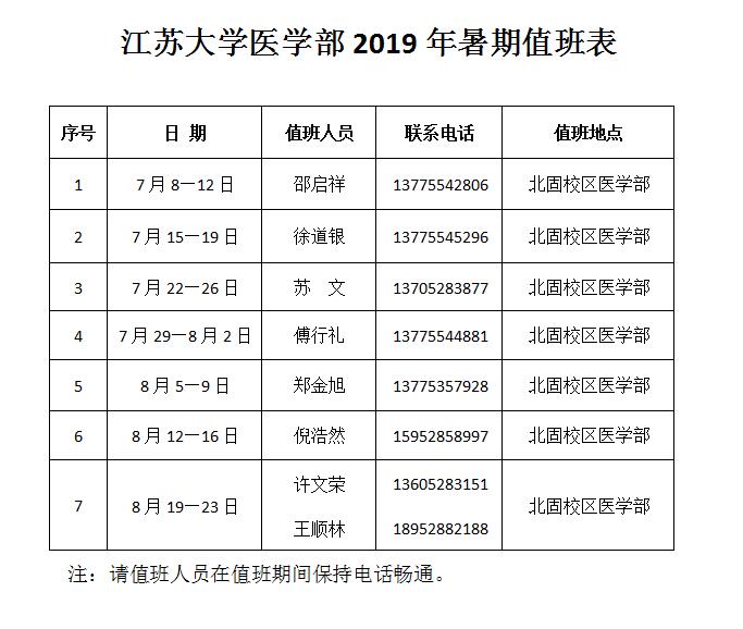 医学部2019年暑期值班表