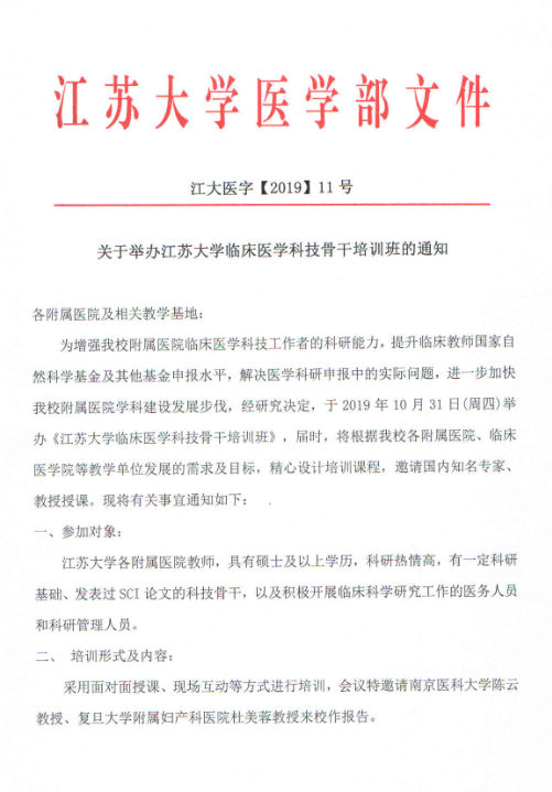 关于举办伟德victor1946临床医学科技骨干培训班的通知