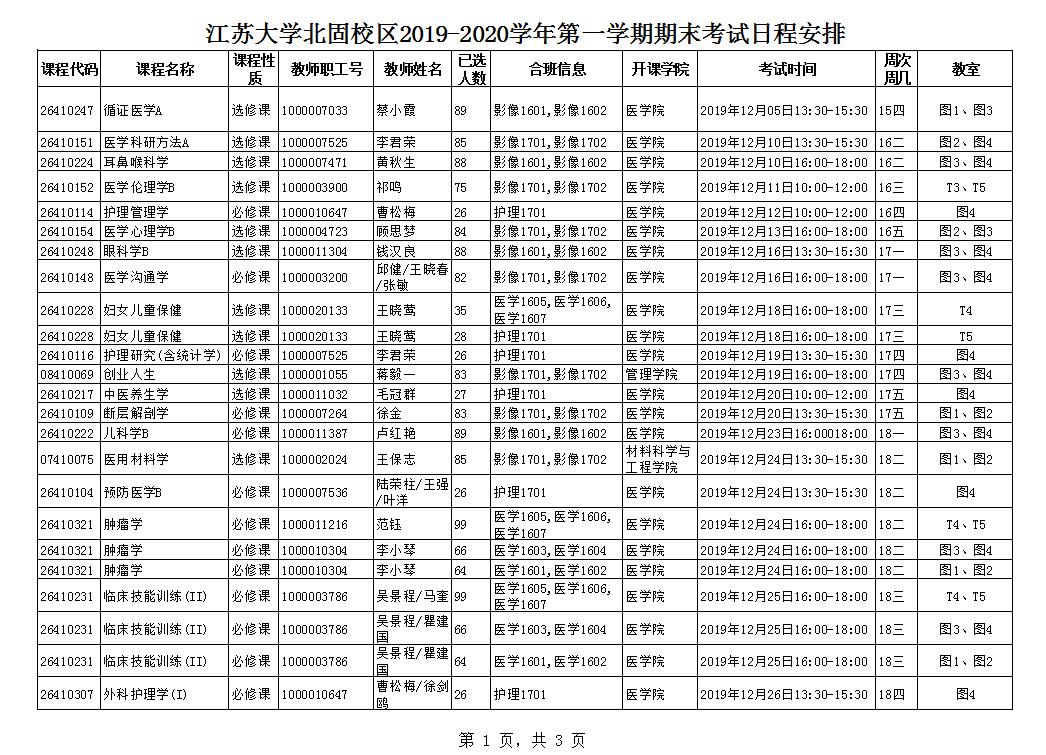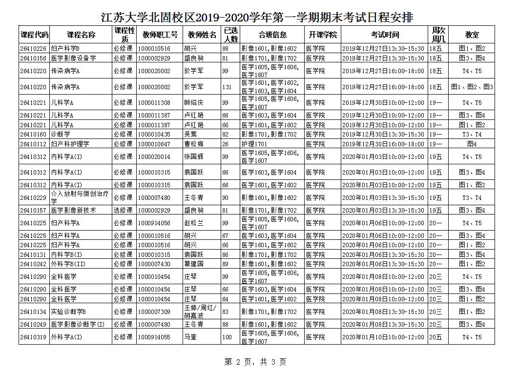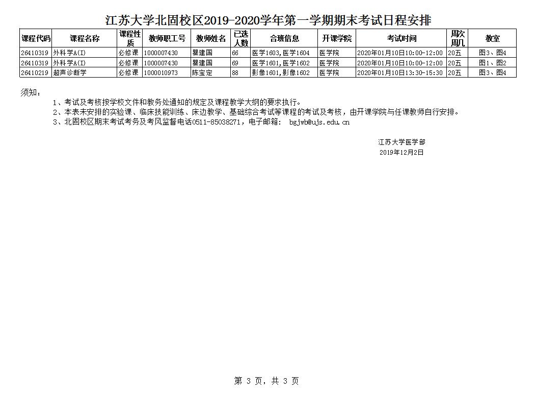伟德victor1946北固校区2019-2020学年第一学期期末考试日程安排